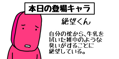 2020年08月27日 本日の登場キャラ いつか僕の漫画に登場する予定のキャラクターを紹介します。自分の枕から、牛乳を拭いた雑巾のような臭いがすることに絶望している。 タグ :#ギャグ漫画#ギャグ#イラスト#絵描きさんと繋がりたい#お絵かき#1コマ漫画#ゆるいイラスト#1日1絵#イラスト好きな人と繋がりたい#雑巾