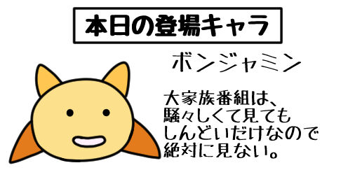2021年12月15日 本日の登場キャラ いつか僕の漫画に登場する予定のキャラクターを紹介します。大家族番組は、騒々しくて見てもしんどいだけなので絶対に見ない。 タグ :#ギャグ漫画#ギャグ#イラスト#絵描きさんと繋がりたい#お絵描き#イラスト好きな人と繋がりたい#大家族番組#騒々しい#しんどい