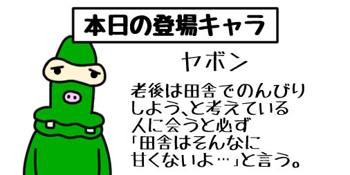 2022年10月26日 本日の登場キャラ いつか僕の漫画に登場する予定のキャラクターを紹介します。老後は田舎でのんびりしよう、と考えている人に会うと必ず「田舎はそんなに甘くないよ…」と言う。 タグ :#ギャグ漫画#ギャグ#イラスト#絵描きさんと繋がりたい#お絵描き#イラスト好きな人と繋がりたい#老後#田舎#のんびり#甘くない