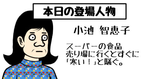 2022年10月15日 本日の登場キャラ いつか僕の漫画に登場する予定のキャラクターを紹介します。スーパーの食品売り場に行くとすぐに「寒い!」と騒ぐ。 タグ :#ギャグ漫画#ギャグ#イラスト#絵描きさんと繋がりたい#お絵描き#イラスト好きな人と繋がりたい#スーパー#食品売り場#寒い#騒ぐ