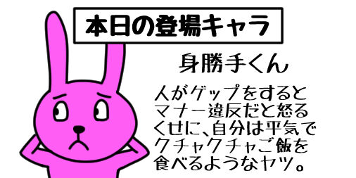 2022年05月07日 本日の登場キャラ いつか僕の漫画に登場する予定のキャラクターを紹介します。人がゲップをするとマナー違反だと怒るくせに、自分は平気でクチャクチャご飯を食べるようなヤツ。 タグ :#ギャグ漫画#ギャグ#イラスト#絵描きさんと繋がりたい#お絵描き#イラスト好きな人と繋がりたい#ゲップ#マナー違反#クチャクチャ#身勝手